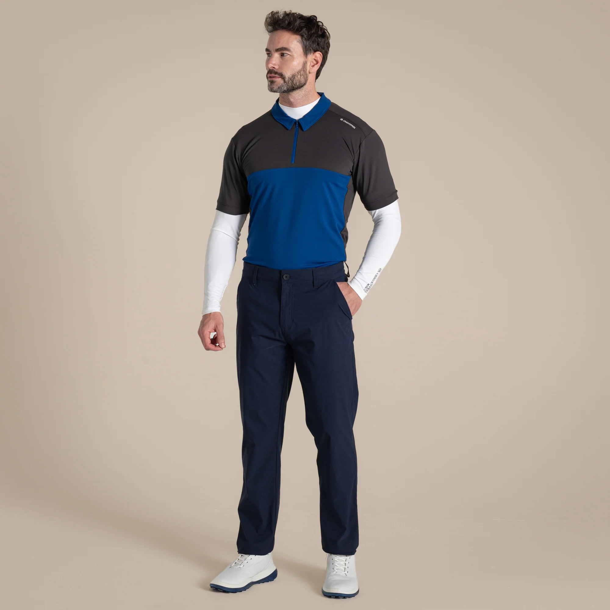 This long-sleeved technical golf top makes an excellent golfing base layer. The stretch NosiLife insect-repellent and odour-elimination jersey is quick drying and UV protective, helping you stay fresh and comfortable all day long while enabling unrestricted freedom of movement.