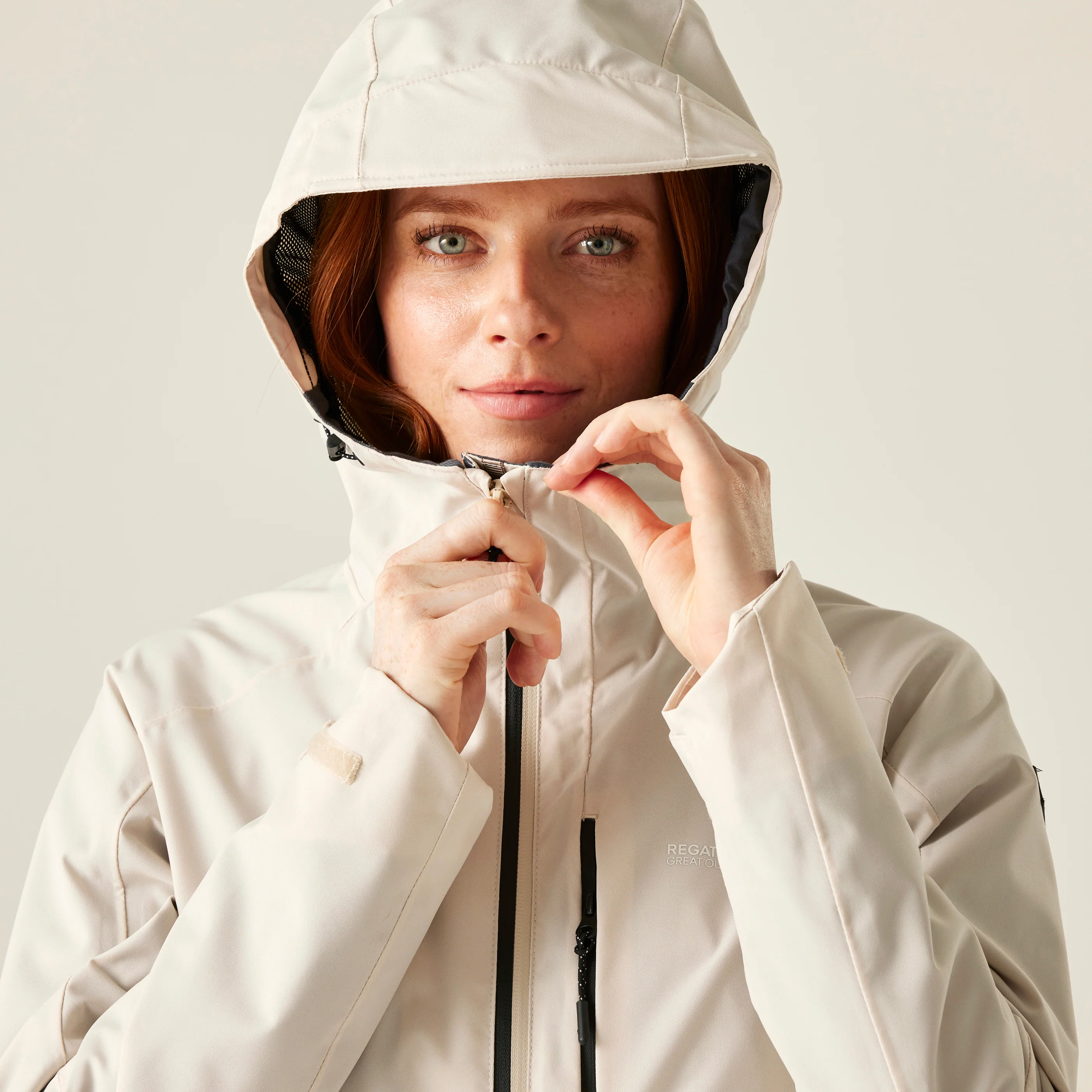 - Hi-tech water repellent centre front zip with inner zip guard and drainage channel