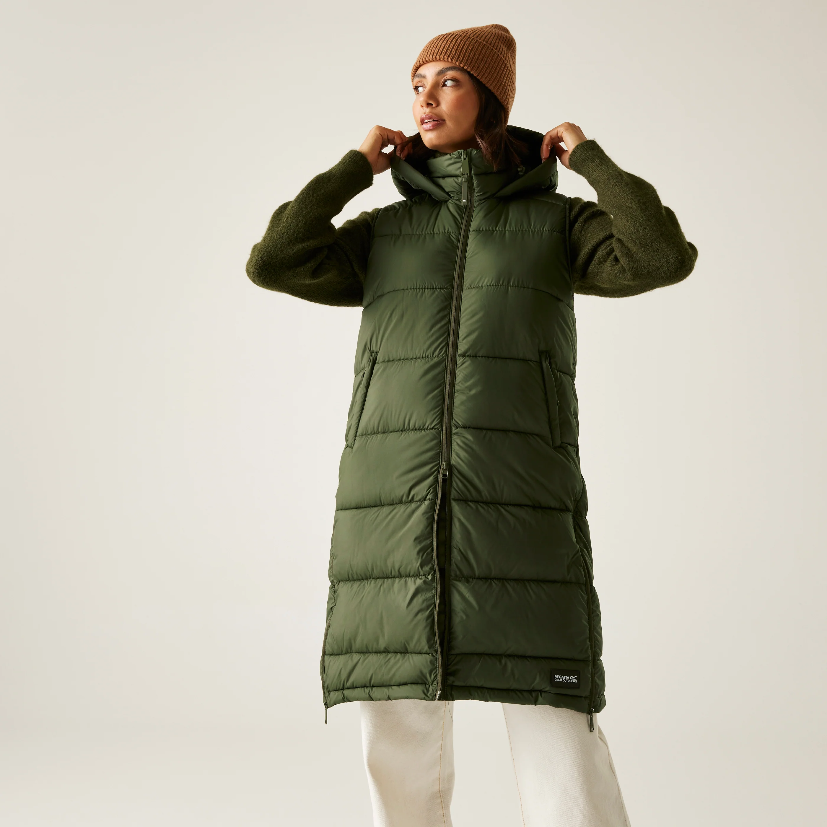 -70%Women's Ganella Quilted Longline Gilet | Dark Khaki—